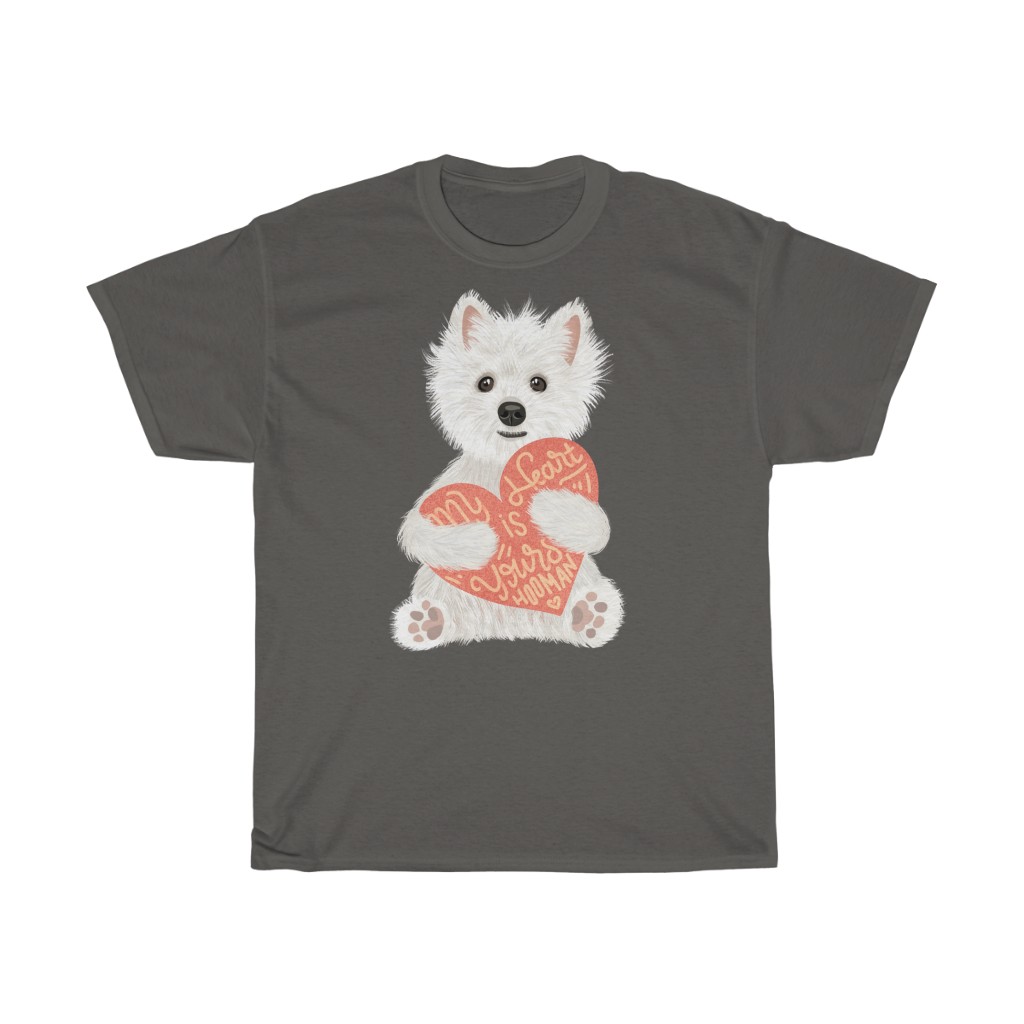This unisex heavy cotton tee is a great gift for anyone you know who loves Westies (and cute dogs in general)! They come in multiple sizes and colors. Get it in our shop: delivery to USA or delivery to Europe.